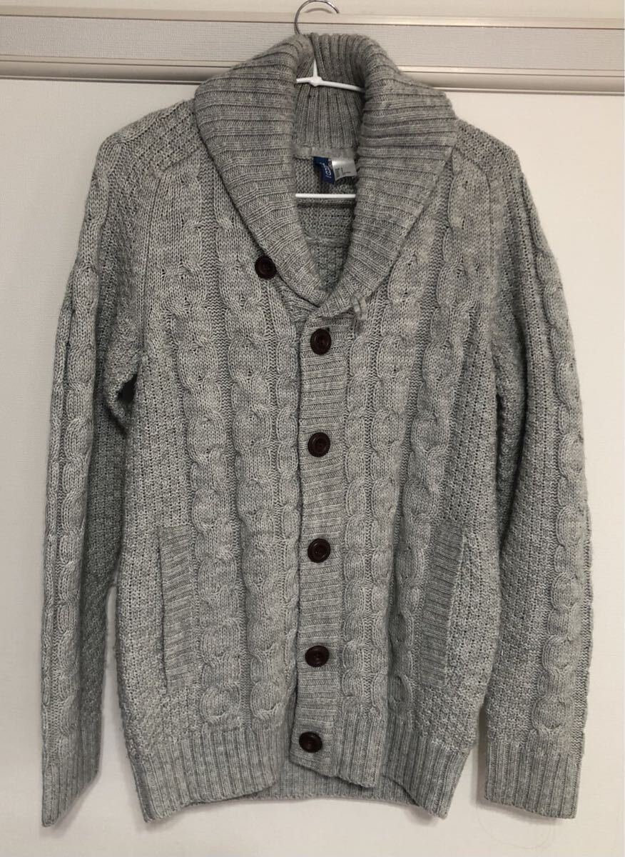 > H&M エイチアンドエム ケーブルニット セーター Sサイズ 170/92A グレー ニット カウチン ショールカラー ウール ジャケット カウチン 厚手