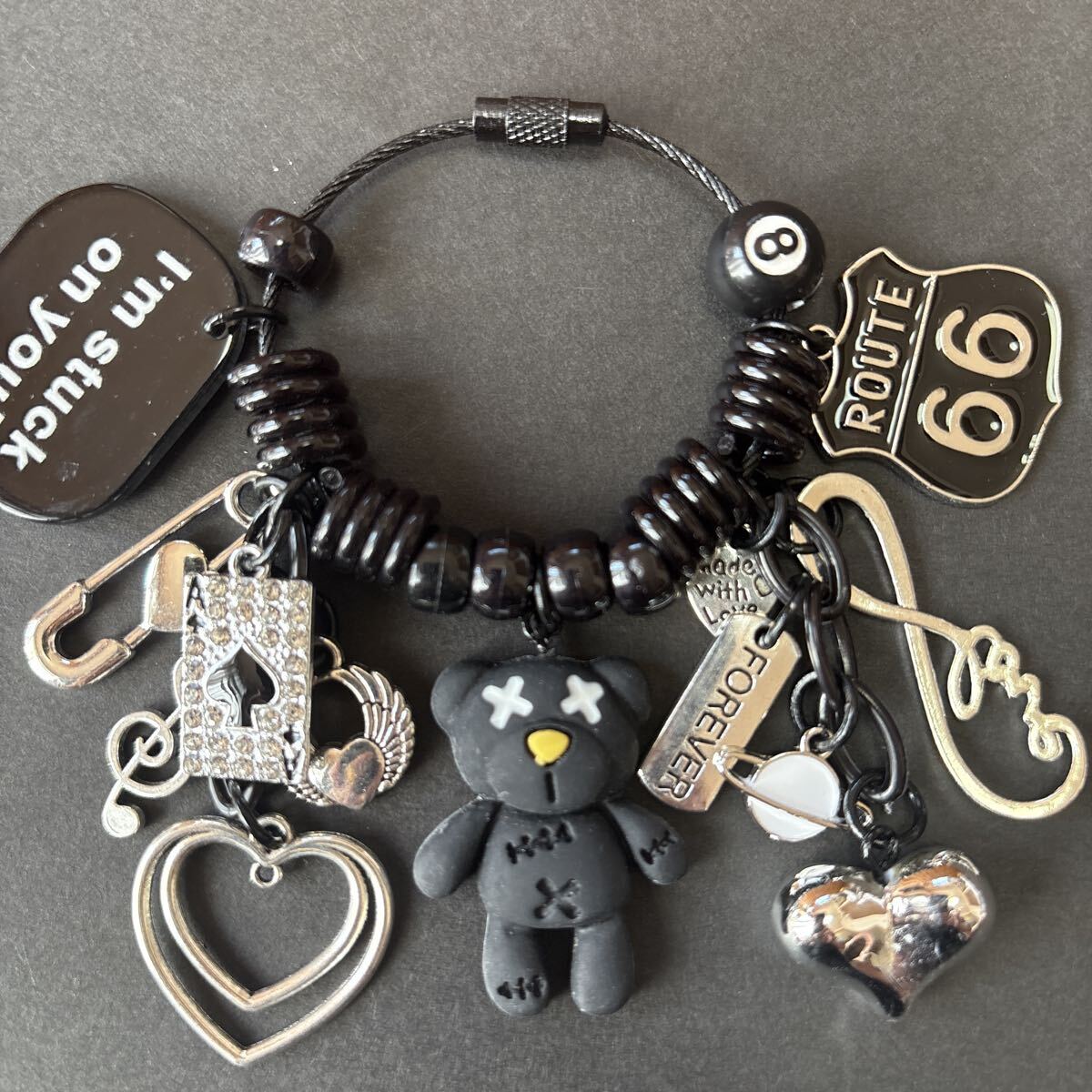 - クールシルバーカラーかわいいベアじゃらじゃらキーホルダーチャームストラップ