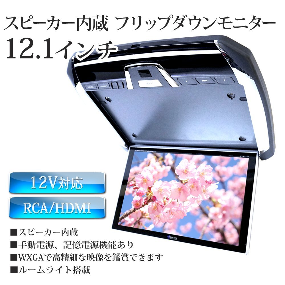 > 大特価★1000円OFF★フリップダウンモニター 12.1インチ リアモニター 車載モニター HDMI対応 12V FullHD リモコン 1080p 軽量 薄型F1240BH