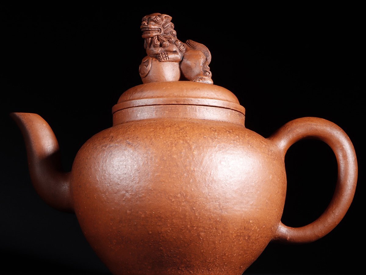 - 【安】清時代 乾隆年製 朱泥 獅戯球鈕大茶壺 宜興紫砂 常滑 朱泥急須 煎茶道具 茶壷 古董品 時代物 313