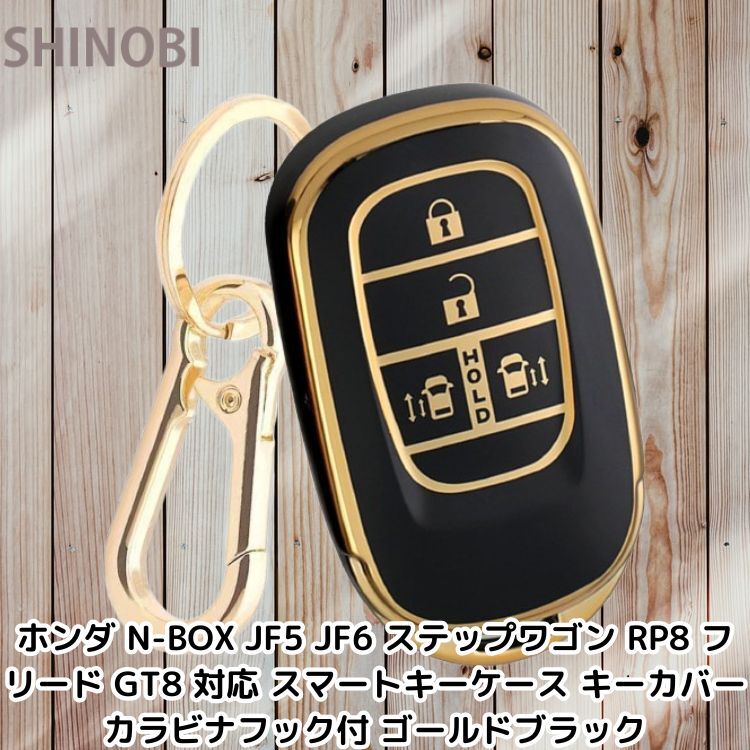 > ホンダ N-BOX JF5 JF6 ステップワゴン RP8 フリード GT8 対応 スマートキーケース キーカバー カラビナフック付 ゴールドブラック