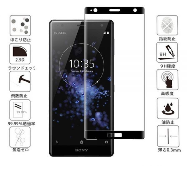 - 2枚セット『3D』Sony Xperia XZ2 Premium/SO-04K/SOV38ガラスフィルム保護3D加工曲面硬度9H保護カバー高透過率 気泡レス黒ブラック