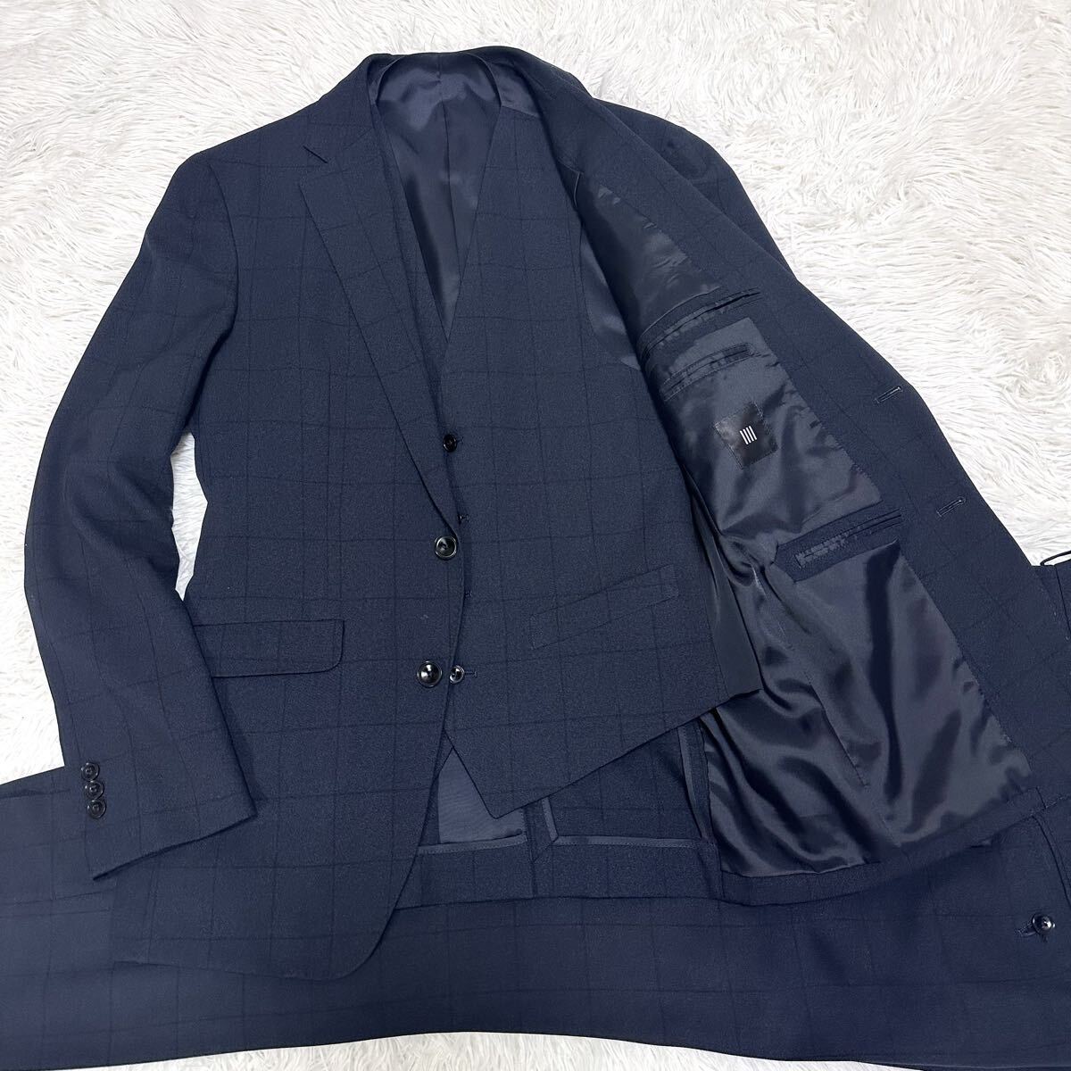 > SUIT SELECT【3ピースセット 洗える 伸縮性】スーツセレクト ビジネススーツ ジャケット ベスト スラックス ボックスチェック Y5 ネイビー