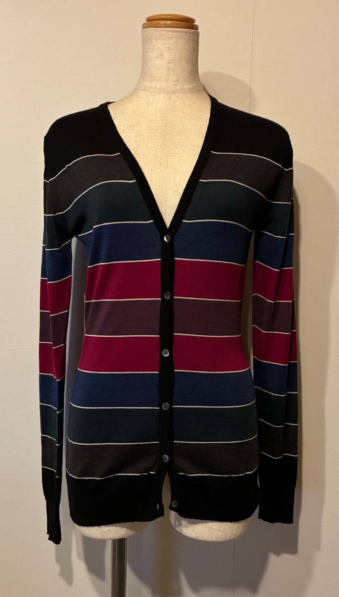 - JOHN SMEDLEY ジョンスメドレー ウール 長袖カーディガン 黒ベース ストライプ S 1回着用のみ
