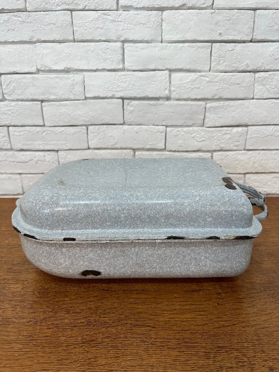 > 5007/5086 ドイツ アンティーク ホーロー鍋 ガーデン オブジェ カントリー ココット キッチン 蓋付き 高さ15cm 幅44cm 奥行き25cm bhh