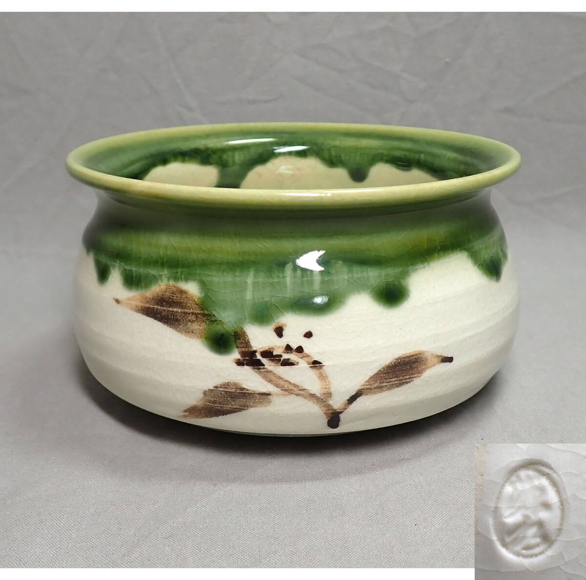 - 【京焼 建水 源乃 在銘】在印 花紋 茶器 茶碗 茶道具 骨董 古道具 アンティーク