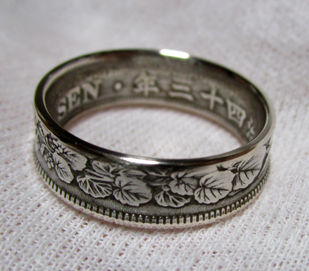 - 【s328】 コインリング☆旭日50銭 銀貨☆ハンドメイド 24号 明治四十三年