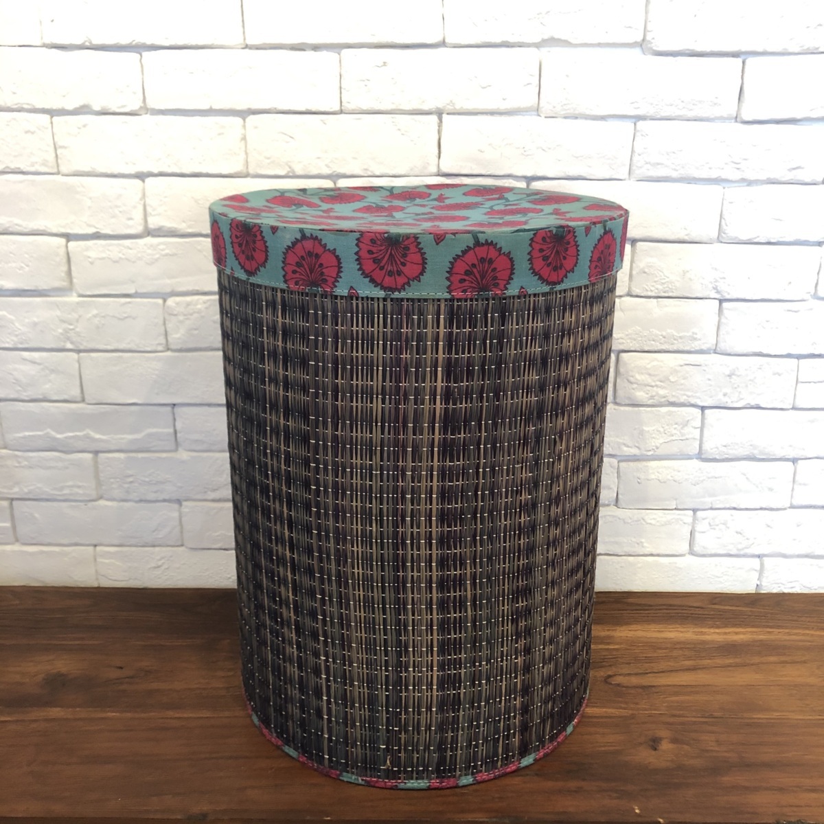 > 3629 アメリカ ビンテージ 収納ボックス ボックス ナチュラル アジアンテイスト ジャンク インテリア ファブリック 高さ49cm 直径36cm bdd