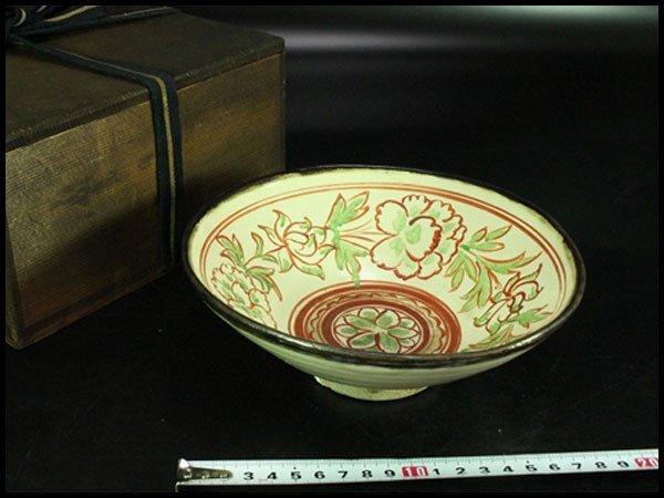 > 【金閣】中国美術 赤絵 草花紋 碗 古美術 唐物 茶道具伝来 旧家蔵出 送料無料(YC513)