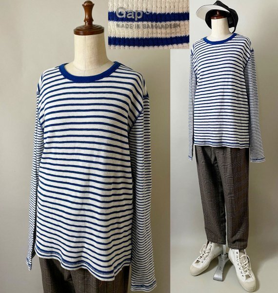 > ★【近年ビンテージ 2000年代】00s GAP ギャップ コットン セットインスリーブ 長袖 ボーダー サーマル ラグラン ロンT Tシャツ L ブルー