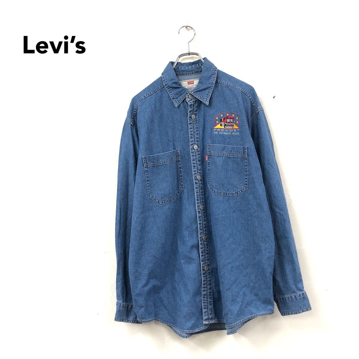 > 2O1143-N◆old◆ Levi's リーバイス シャンブレーシャツ ゆったり 刺繍 ◆ sizeM インディゴ コットン 古着