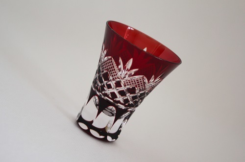 - 工芸ガラス 赤色被せ切子グラス ショットグラス おちょこ ぐい呑み 酒器 1客