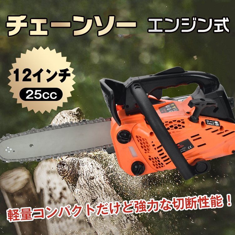 - 1円 正規品 チェーンソー エンジン式 排気量 25cc 12インチ オイル エンジン チェンソー 剪定 丸太 薪割り 切断工具 ガイドバー ny221
