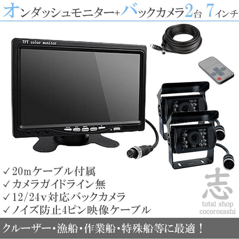 > 限定★船 ボート 12/24V バックカメラ 2台&7インチ液晶&ノイズ防止 船 エンジンルームにも最適 後方確認カメラ 2台目は予備に! 18ヶ月保証