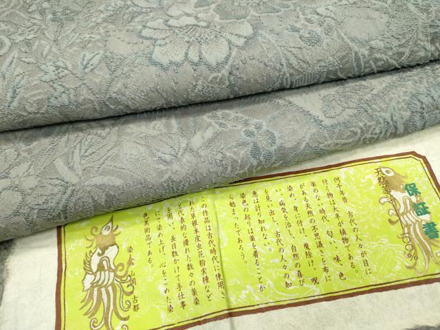 - 平和屋着物▼山岡古都・古都染人 染織美術品 薬墨染 天目織 お召 草花 保証書付き 正絹 逸品 DAAW3754fe