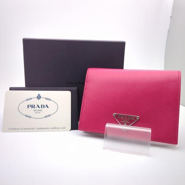 > プラダ 二つ折り財布 サフィアーノ M204A 赤紫系 マゼンタ レザー トライアングルロゴ PRADA ◆2004