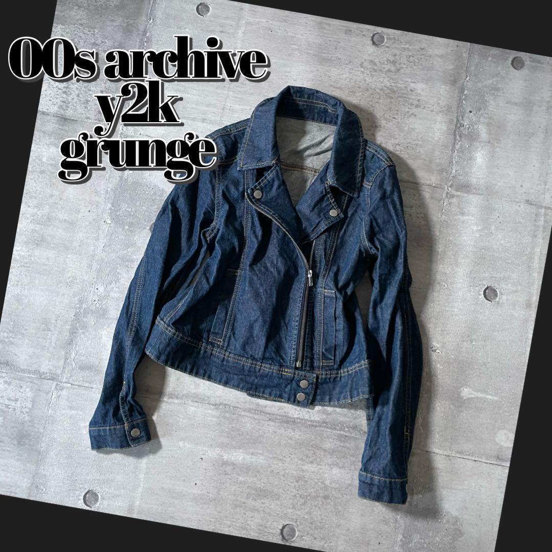 - y2k デニム ダブルライダースジャケット 短丈 平成ギャル 00s グランジ