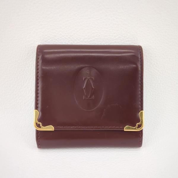 - カルティエ マストドゥカルティエ コインケース 小銭入れ ボルドー レザー ゴールド金具 Cartier ユニセックス ◆2005