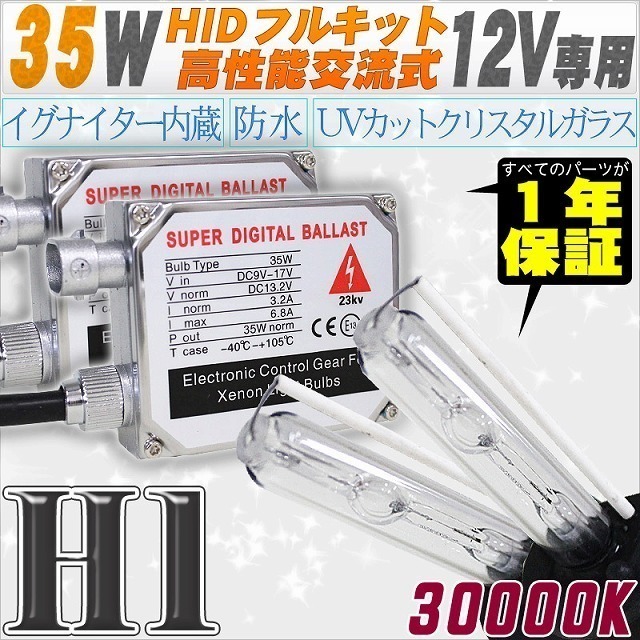 > 高性能 HIDキット 35W H1 30000K 【交流式バラスト&クリスタルガラスバーナー】