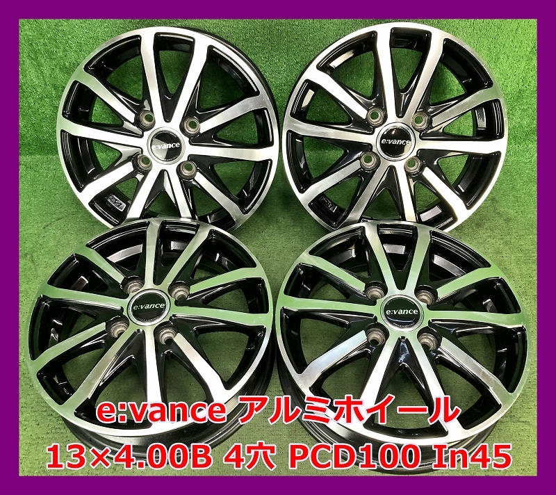 - ★13インチ e:vance 中古 アルミホイール 4本 4穴 PCD100 IN45★
