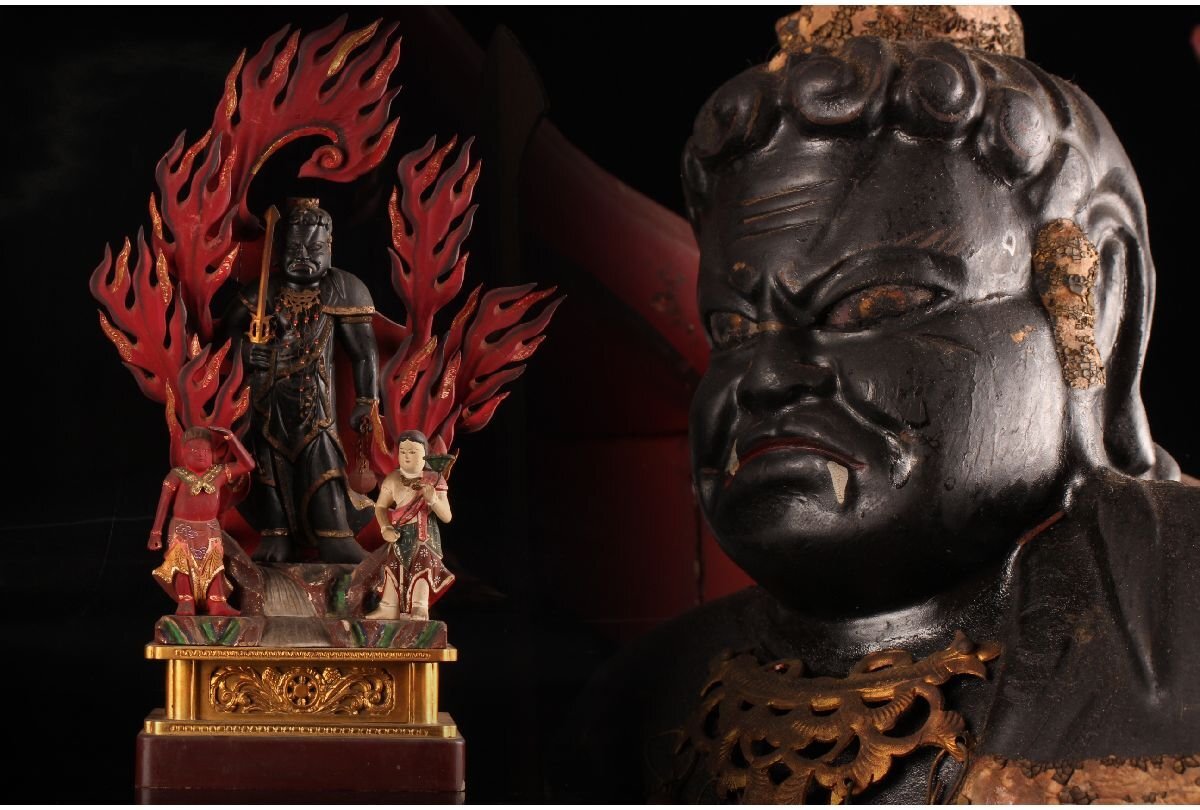 - [URA]江戸期/玉眼/木彫彩色三尊仏/不動明王立像/約69cm/4-10-25 (検索)骨董/仏像/彫刻/仏教/寺社仏閣/観音/仏陀/明王/菩薩/不動