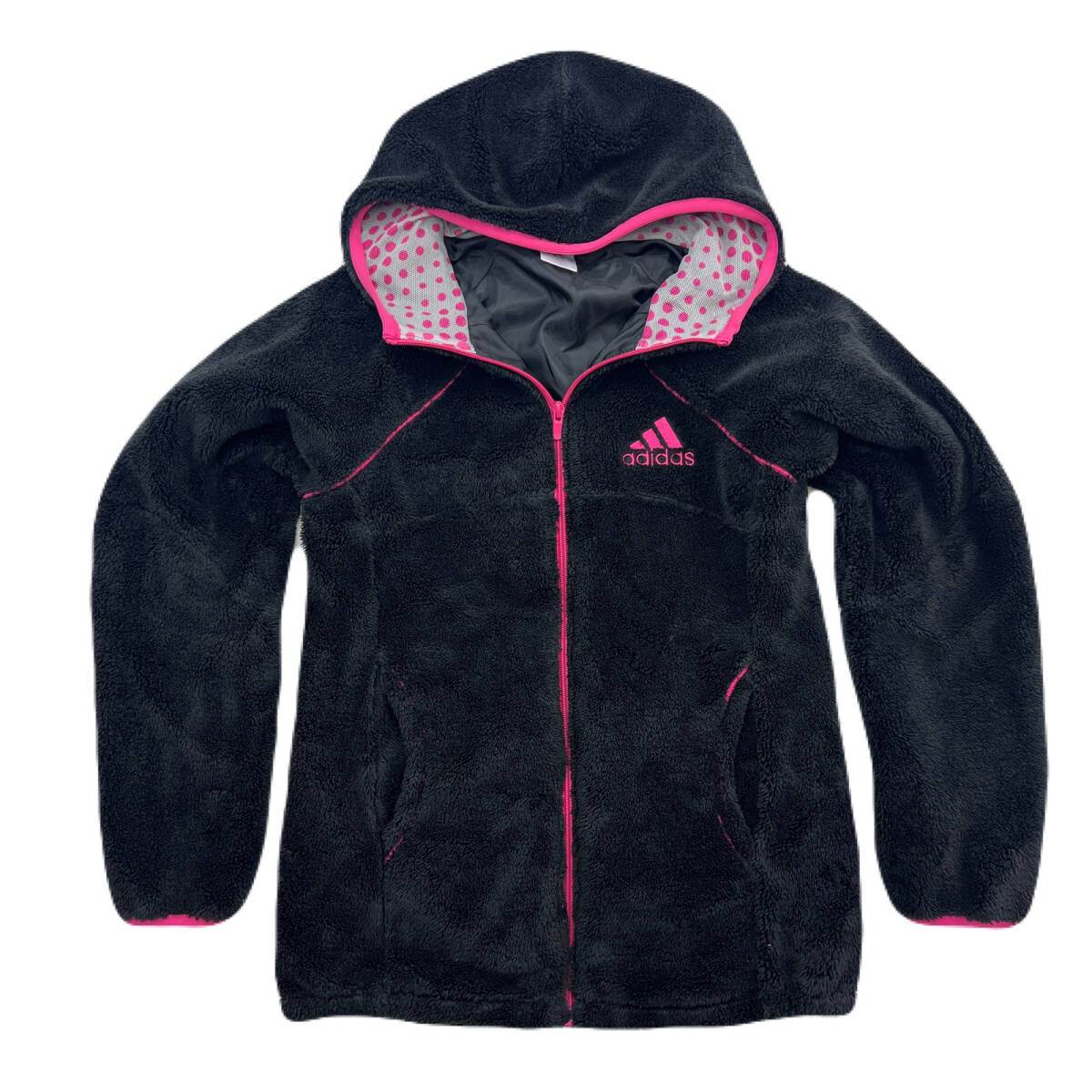> アディダス フリース ジャケット ボア 起毛 ブラック ピンク レディース Lサイズ パーカー ●CA307