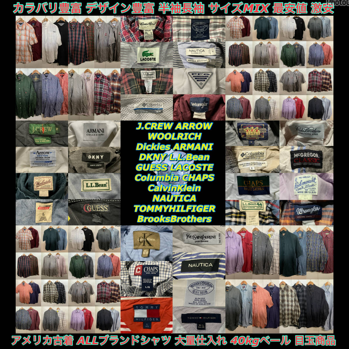 > 【T1526】★超目玉★ アメリカ古着 ALLブランドシャツ 大量40kgベール目玉商品 ブランド豊富 カラバリ豊富 半袖長袖 サイズMIX 大量仕入れ