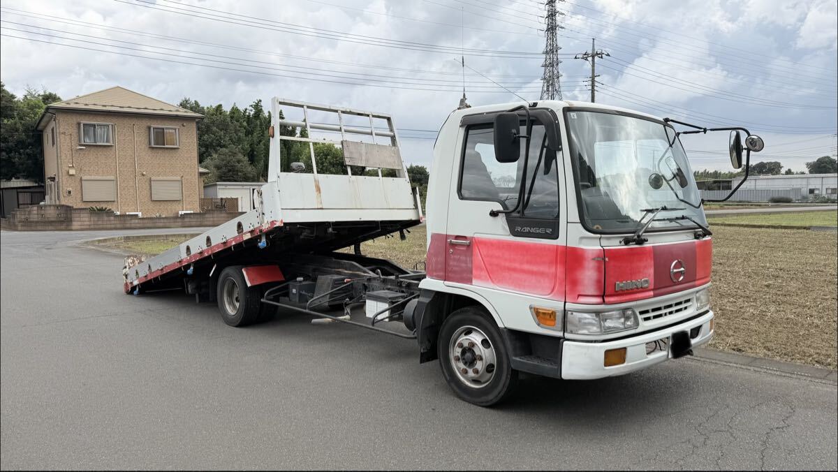- 平成7年・日野レンジャー・ローダー・積載車・ラジコン付き・車検8年8月・ウインチ付き・積載量2450kg・F5速・走行12万キロ