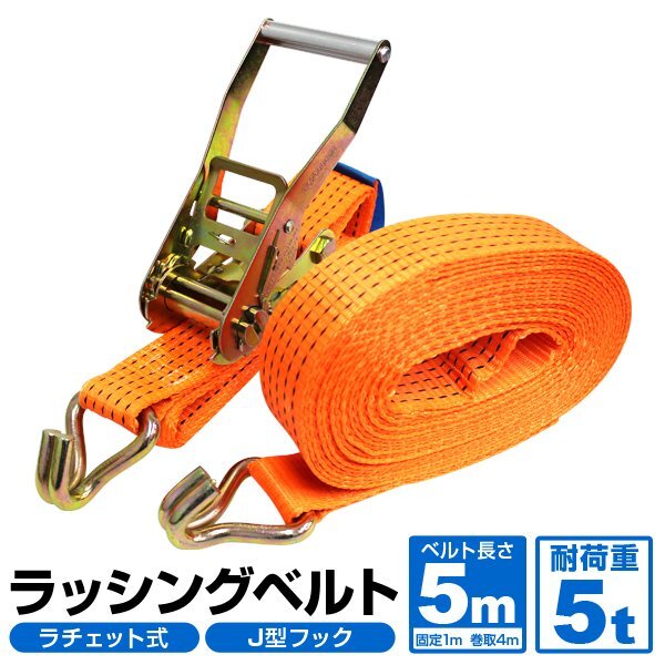 > ラチェット式 ラッシングベルト トラック用 タイダウンベルト 荷締ベルト 耐荷重5t 長さ5m 幅50mm 運搬用スリング 吊具