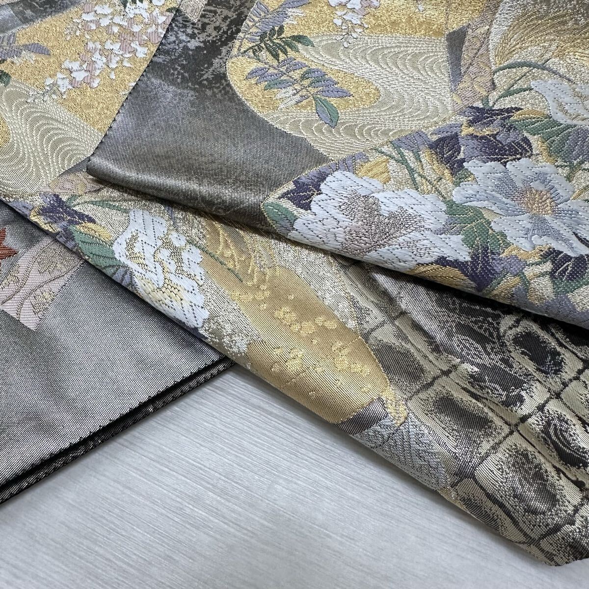 > 袋帯 唐織 美しい花模様の織出し 正絹 着物 W-4614