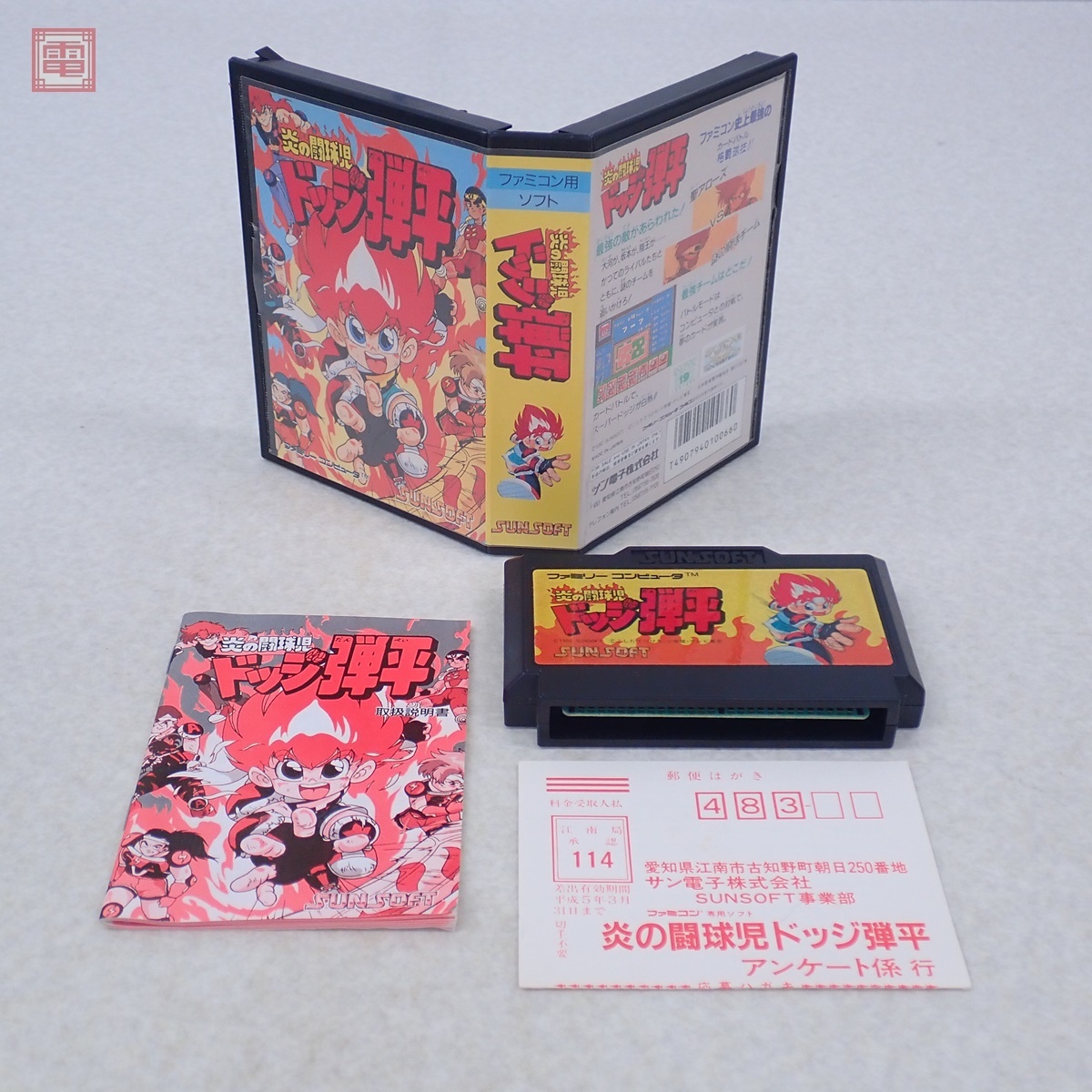 > 動作保証品 FC ファミコン 炎の闘球児 ドッジ弾平 サン電子 SUNSOFT 箱説ハガキ付【10