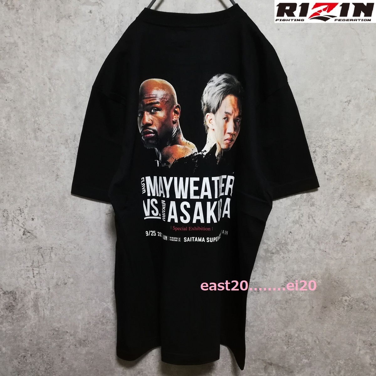 - 超RIZIN フロイド メイウェザー (ボクシング) × 朝倉未来 (総合格闘技) 対戦 フォト メンズ Tシャツ M ブラック 未使用 MMA 即決 送料無料