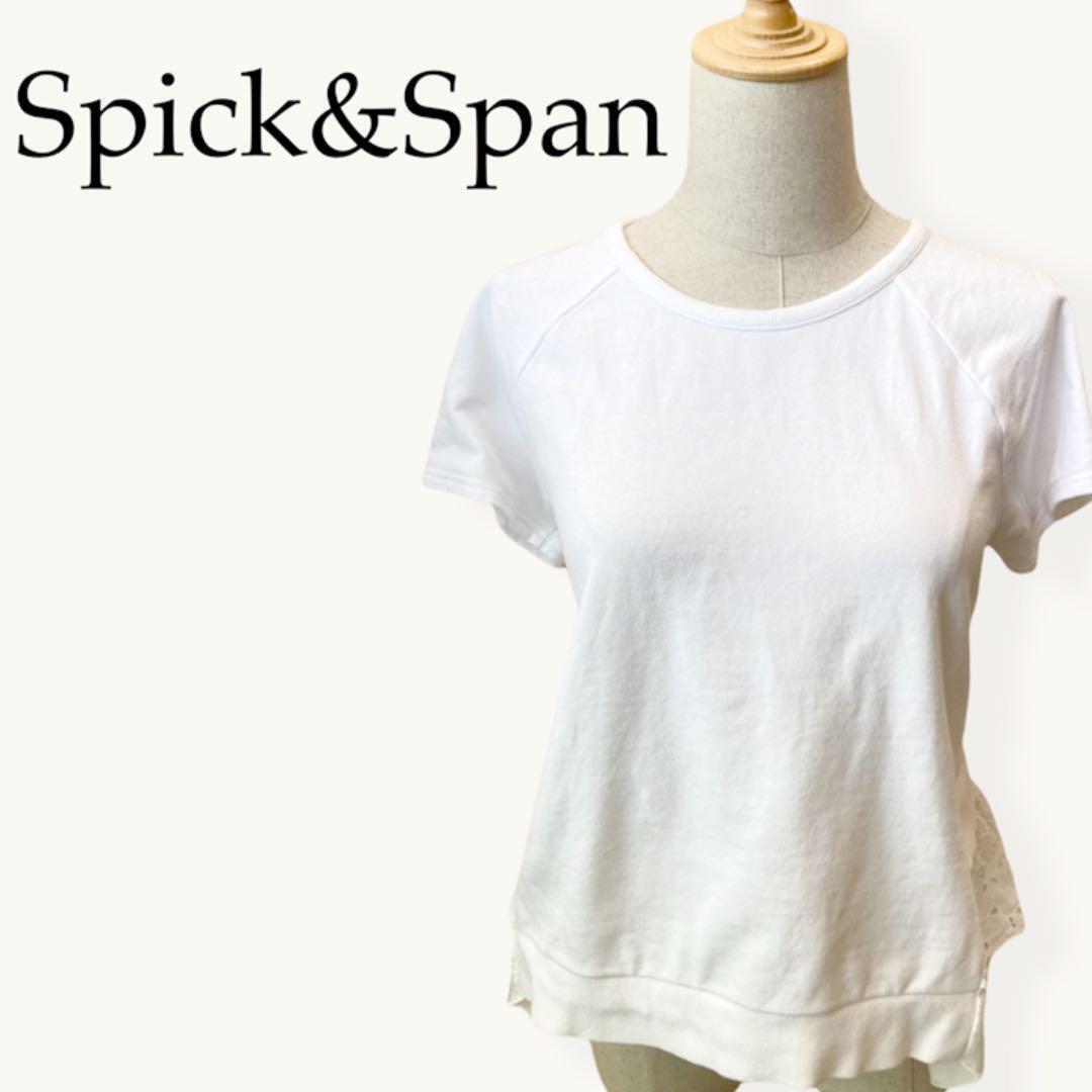 - T スピックアンドスパン Spick&Span カットソー 半袖丸首 フリル レース ホワイト フリーサイズ