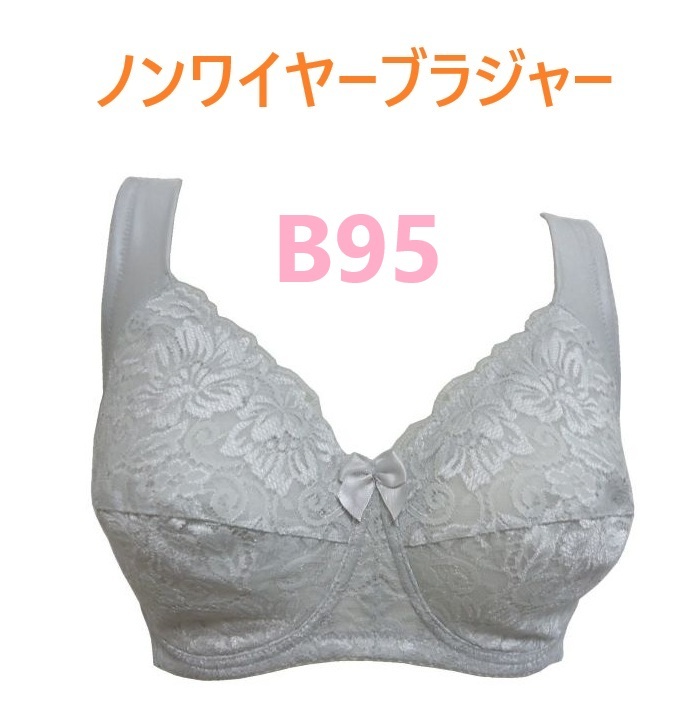 > B95・シルバーグレー 綿混 フルカップノンワイヤーブラジャー カップ裏 綿100% 幅広ストラップ 脇高設計 新品