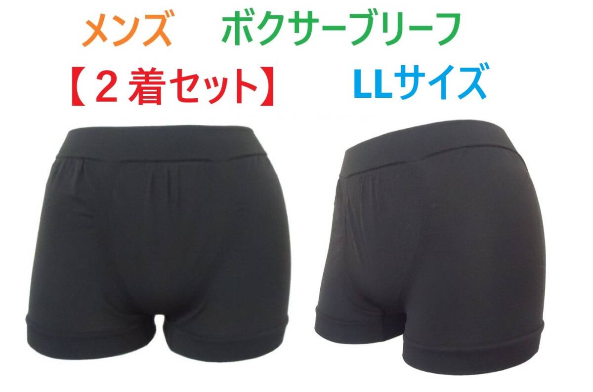 > 【2着セット】LL・ブラック メンズ ボクサーパンツ (前閉じタイプ) 無地 ボクサーブリーフ 男性下着 ソフトフィット 新品