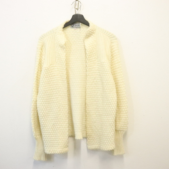 > r438 80sビンテージ Joyce アクリルニットカーディガン■1980年代製 表記Lサイズ レディース アイボリー 無地 アメカジ 古着 古着卸