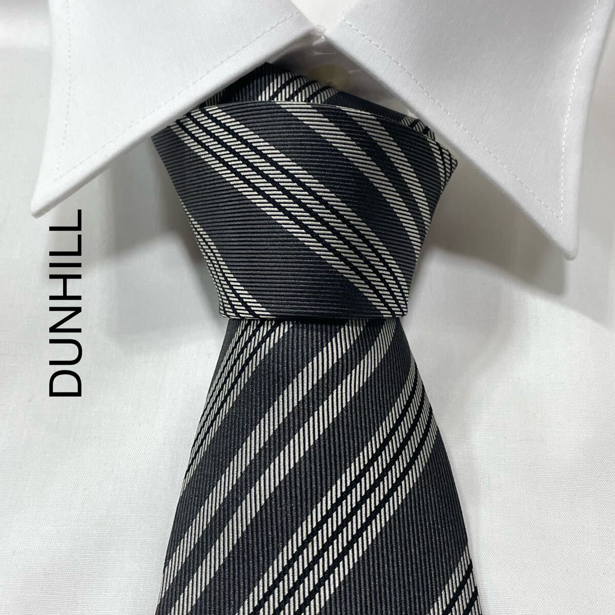 > DUNHILL ダンヒル ロゴ 刺繍 レジメンタル ストライプ ジャガード シルク ネクタイ イタリア製 チャコールグレー グレー TG2937