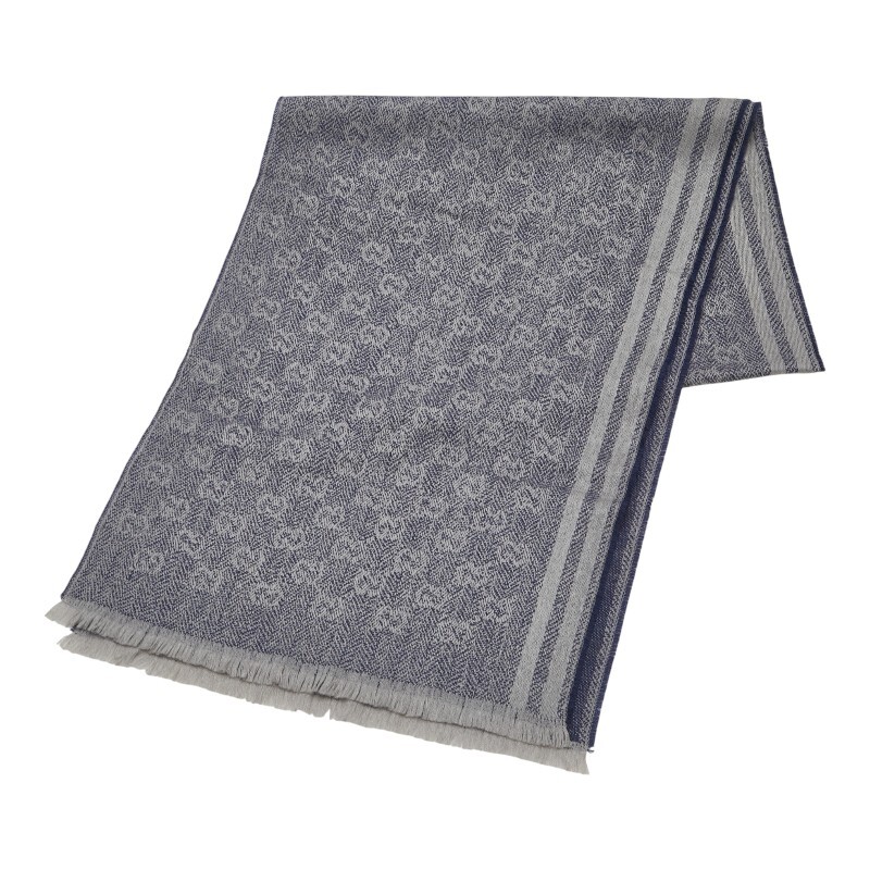 - グッチ GGウール マフラー ベージュ ネイビー ウール レディース GUCCI 【中古】