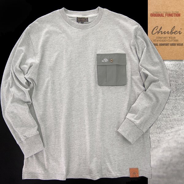 - 新品 チュウベイ リップストップ ポケット 丸首 Tシャツ LL 灰 【CH1443202_97_LL】 CHUBEI カットソー ハリネズミ 長袖 クルーネック
