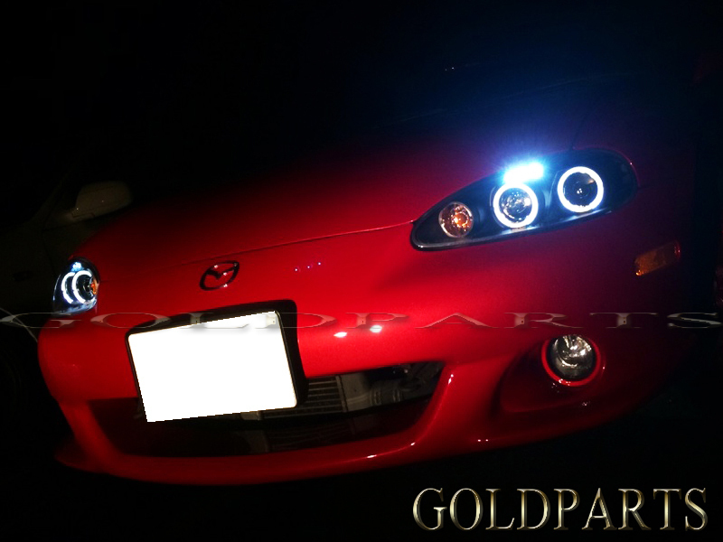 > 【日本光軸】マツダ ロードスター NB MX-5 ブラック LEDイカリング ヘッドライト 後期 ミアータ 黄ばみ・クスミ