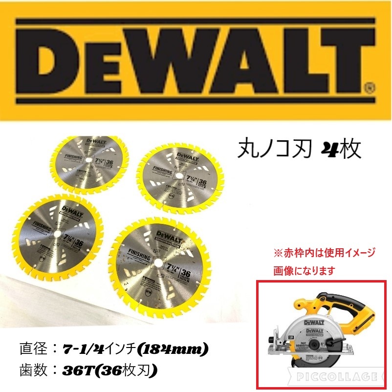 - 【米軍放出品】未使用品 丸ノコ刃 4枚 7-1/4インチ(184mm) 36T 木材用 仕上げカット用 DeWALT DW3174 電動工具 (60) AJ3KK-2#25