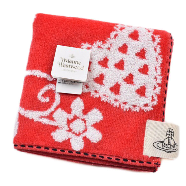 > ヴィヴィアン ウエストウッド タオルハンカチ 1枚 レディース ブランド レッド ホワイト ハート フラワー ロゴ 女性 婦人 ハンドタオル