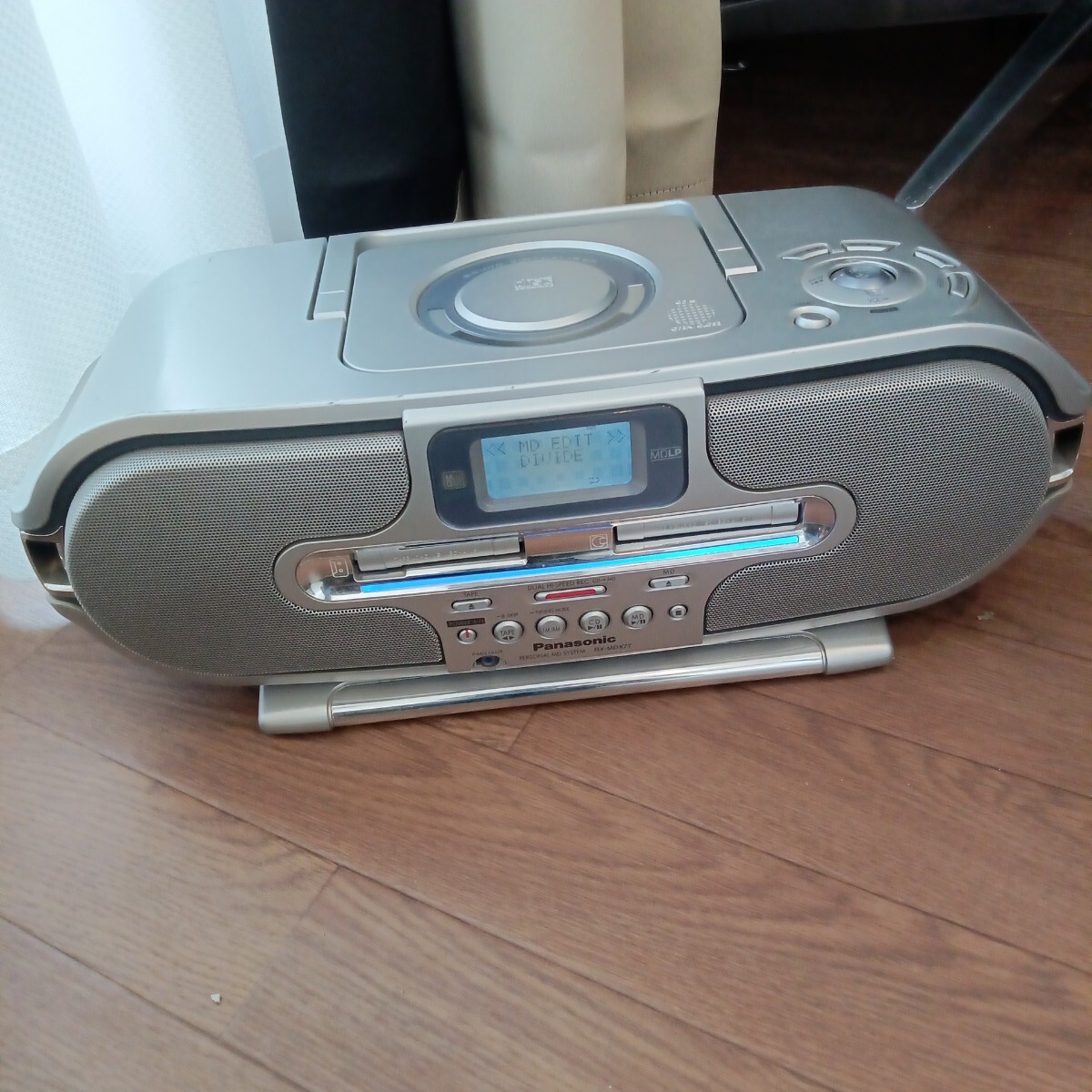 > Panasonic パナソニック パーソナルMDシステム RX-MDX77 2002年製 CD/MD/カセット/AM/FMラジオ ラジカセ シルバー 1007-クロ前-EI5