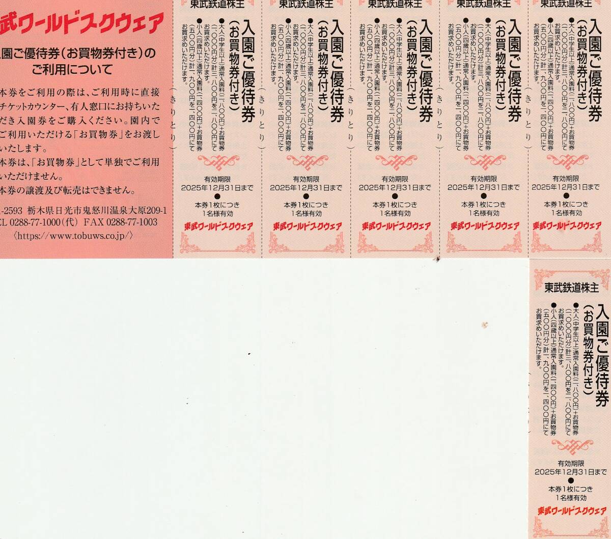- 東武鉄道★株主優待券★東武ワールドスクウェア★ご優待割引券★6枚セット★即決