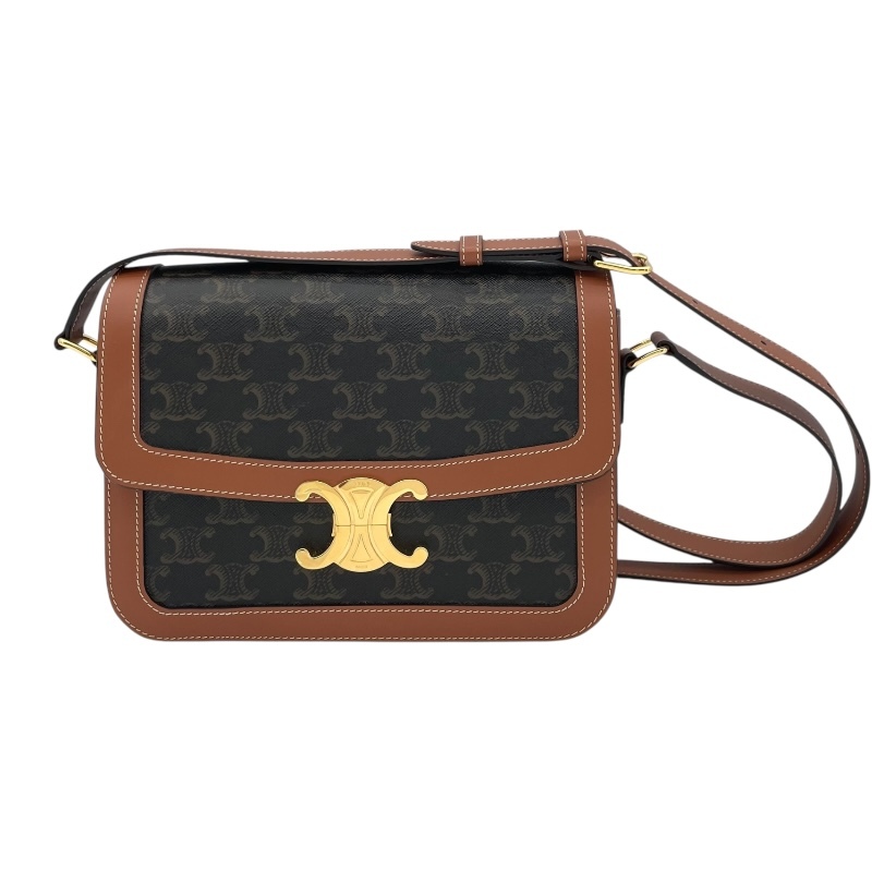 > セリーヌ CELINE クラシックトリオンフ バッグ タン GD金具 トリオンフキャンバス/カーフ ショルダーバッグ レディース 中古