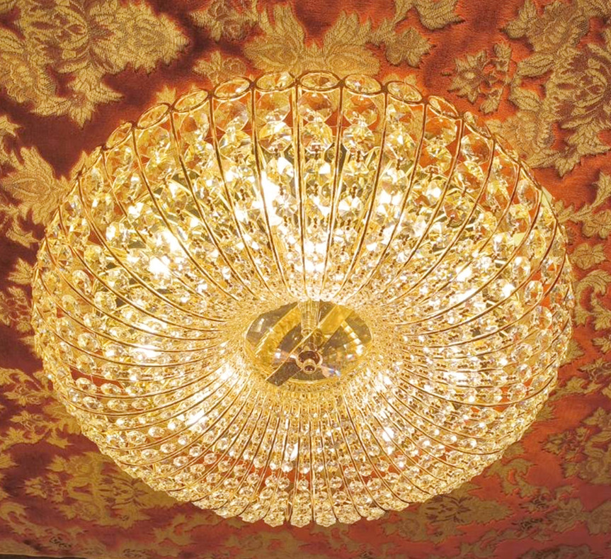 - 新品★かぼちゃ型★天吊りΦ60㎝ シャンデリア BA15S口金 フルゴールドメッキ クリスタルビーズ 男の城 デコトラ 観光バス 車内照明 C0631S