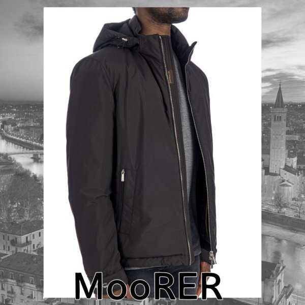 > ビームス購入品 今季から定価30万 MooRER ALBINI-PUM アルビニ ポリエステル レーヨン サキソニー 撥水 フーデッド ダウンジャケット 50