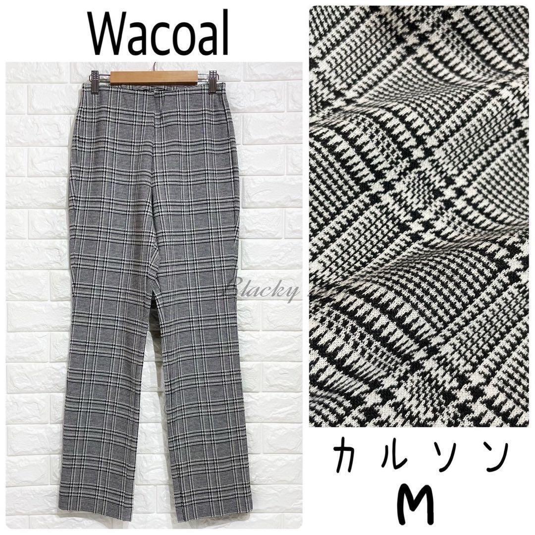 > Wacoal ワコール カルソン ストレッチ パンツ タグ付き 未使用 グレンチェック M ストレート ルームウェア ワンマイルウェア 綿混