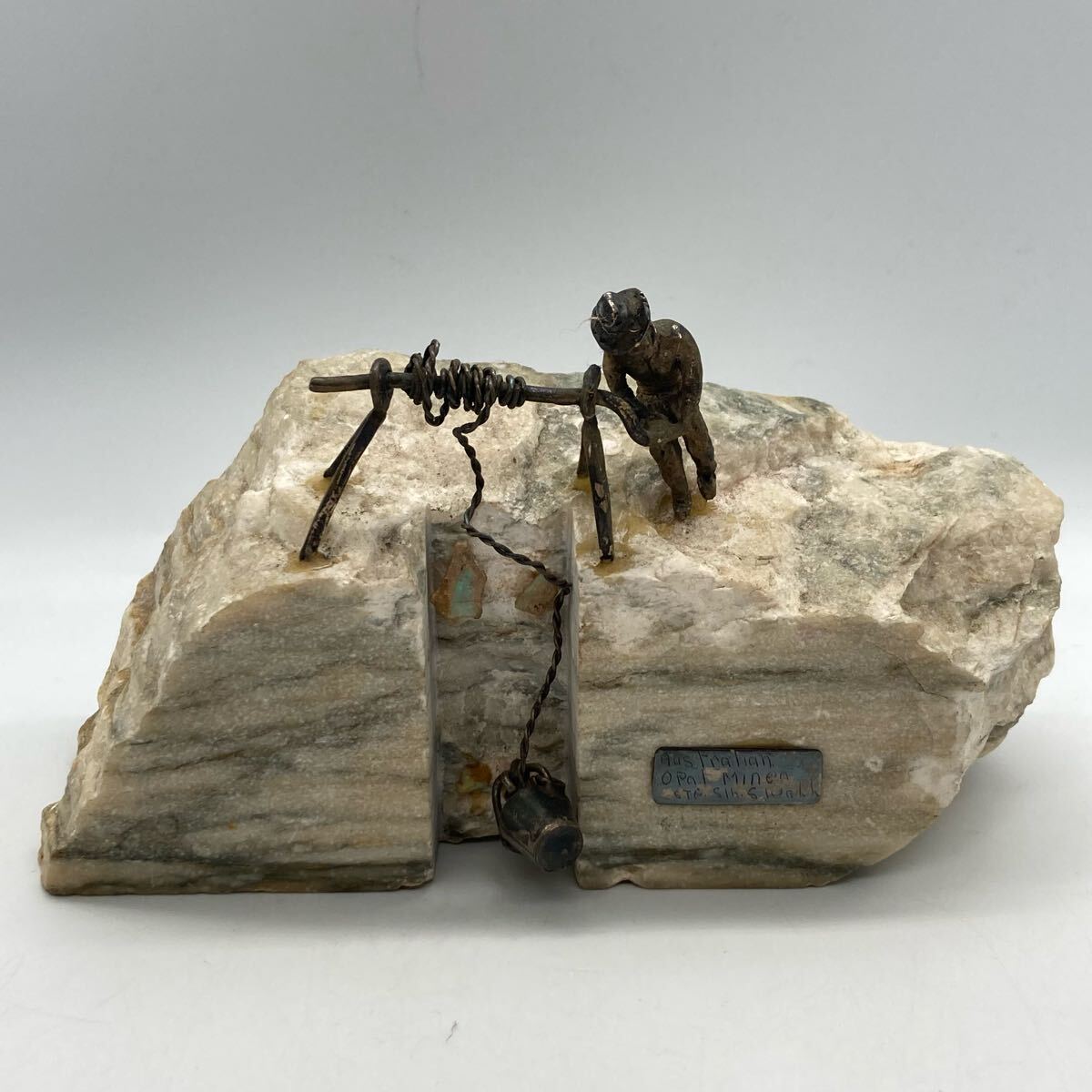 > M1007709N オブジェ オパール 石 置物 鉱夫 インテリア Australian アンティーク 雑貨 1.68キロ opal Opal 当時物 中古品 現状品