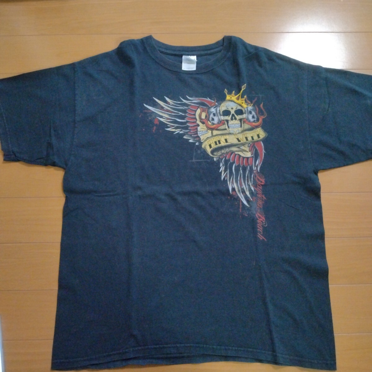- GILDAN ギルダン 古着 黒 Tシャツ 半袖 フェードブラック スカル 両面プリント BIKE WEEK